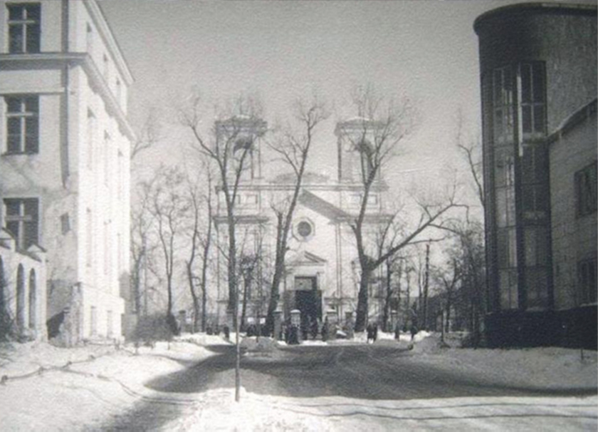 Постройка позднего польского периода. Хотя внешний объем здания был сформирован, к 1939 году строительство не было полностью завершено. В 1940 году над зданием работали уже советские специалисты и пришли к такому его виду, который имеем сейчас.